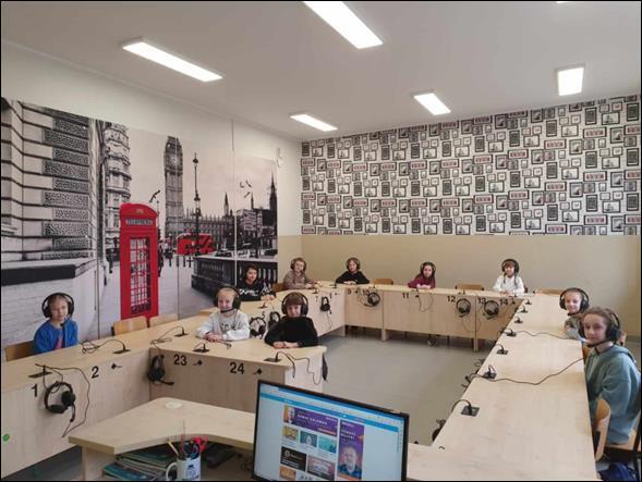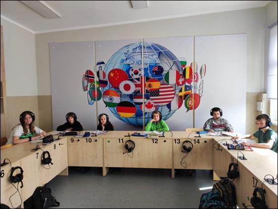 Nasi uczniowie uczą się języków obcych w nowoczesnych, dobrze wyposażonych pracowniach językowych.
