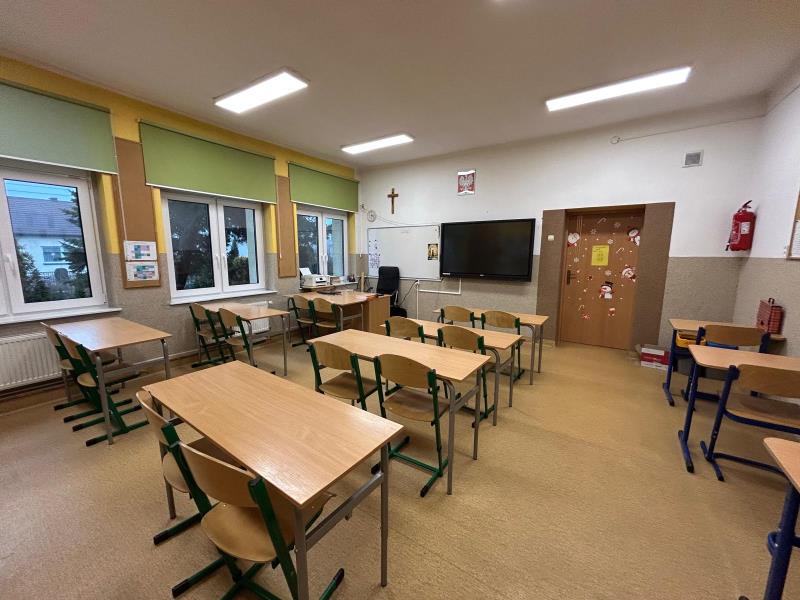 - wszystkie klasy wyposażone są w nowoczesne monitory multimedialne lub tablice interaktywne,